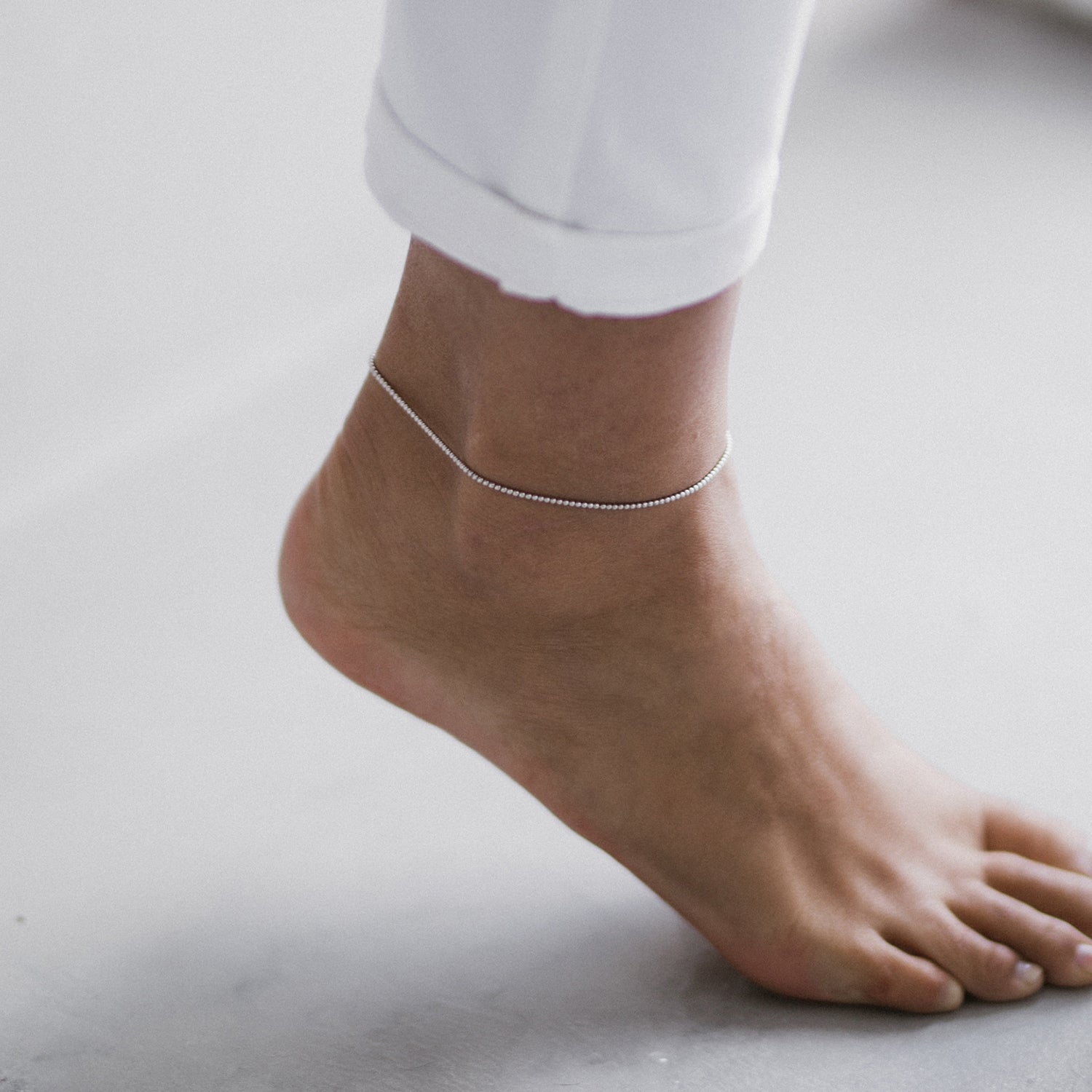 Pulseira de tornozelo de corrente de bolinhas de prata 925.